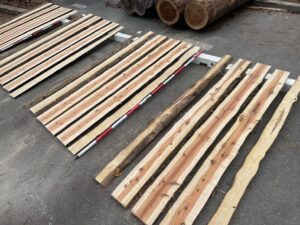 アカネ材の有効利用を提案して頂き、写真の様に製材しました。